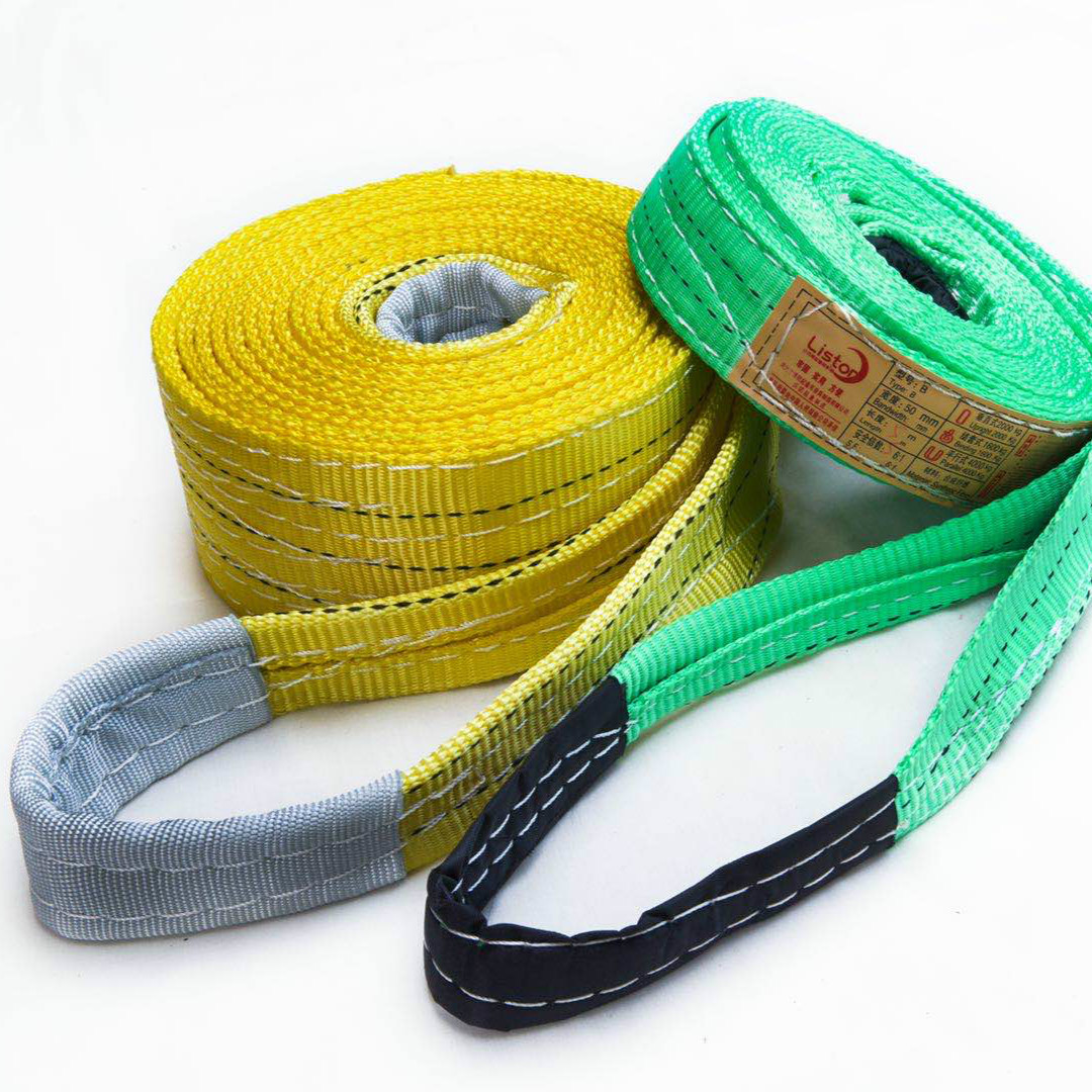 Flat crane hoist with double buckle flat industrial sling synthetic fiber lifting hoisting belt 1-5 tons
